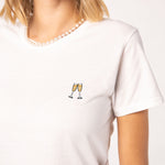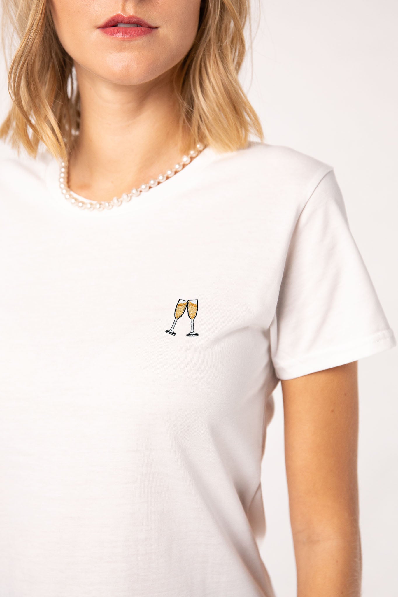 Besticktes Bio Baumwoll Frauen T-Shirt mit extrem angenehmen Stoff (155gsm) und gesticktem Sekt Design