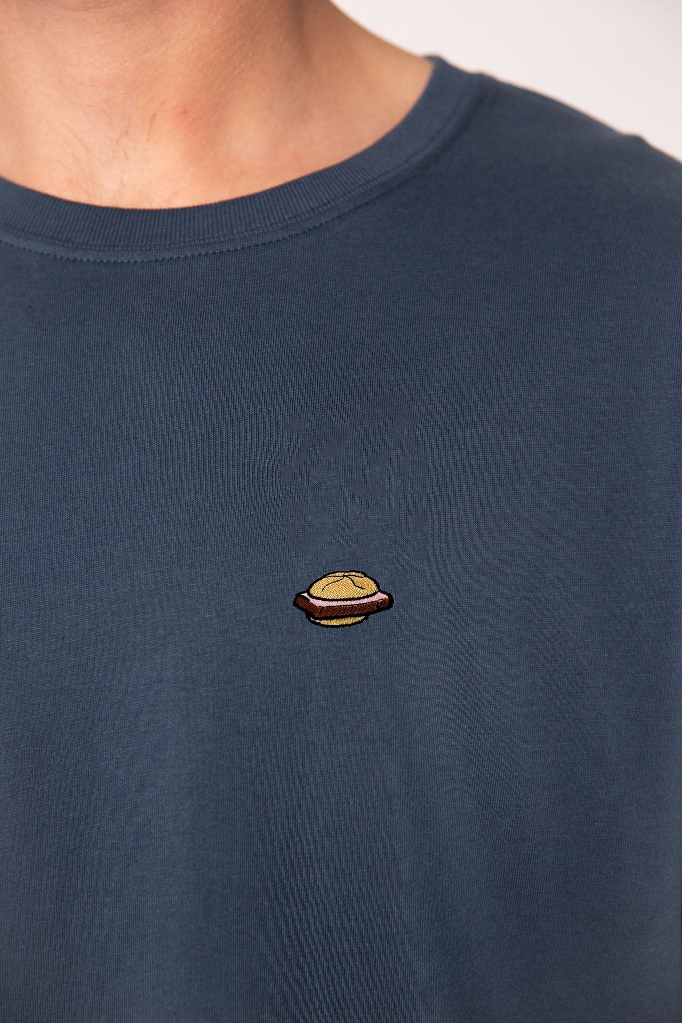 Besticktes Bio Baumwoll Unisex T-Shirt mit schwerem Stoff (190gsm) und gesticktem Leberkassemmel Design