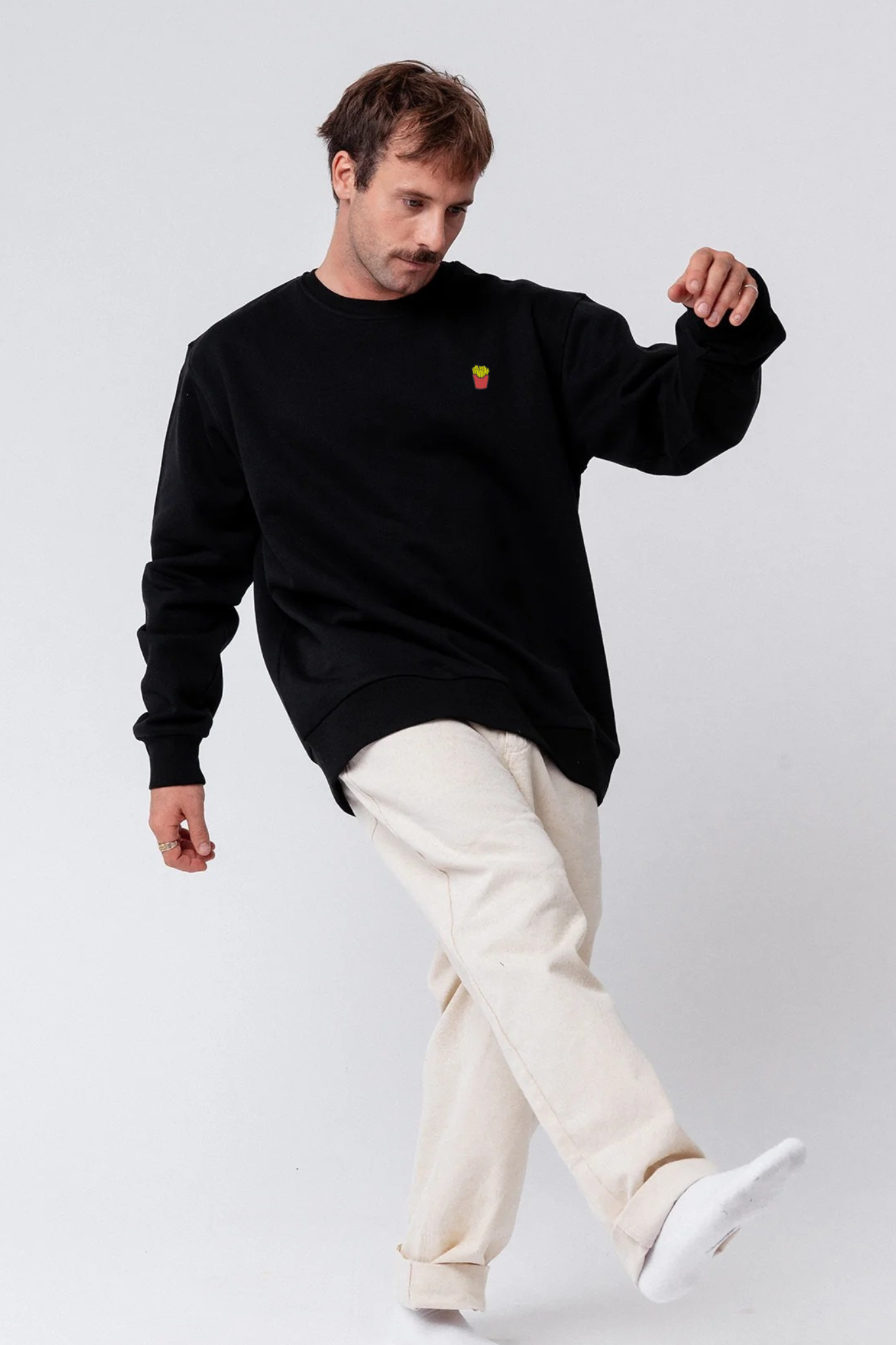Bestickter Bio Baumwoll Unisex Pullover mit schwerem Stoff (320gsm) und gesticktem Pommes Design
