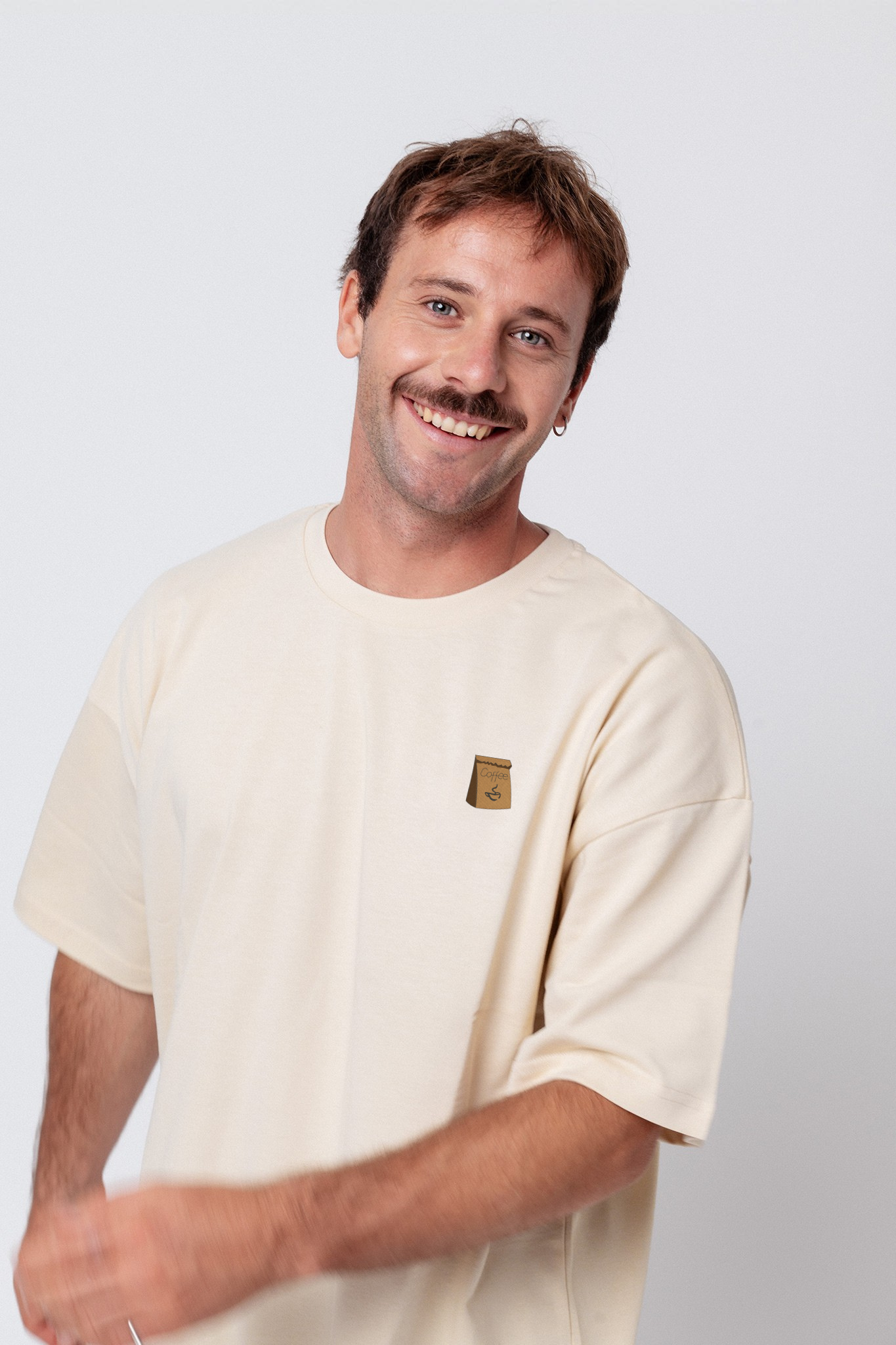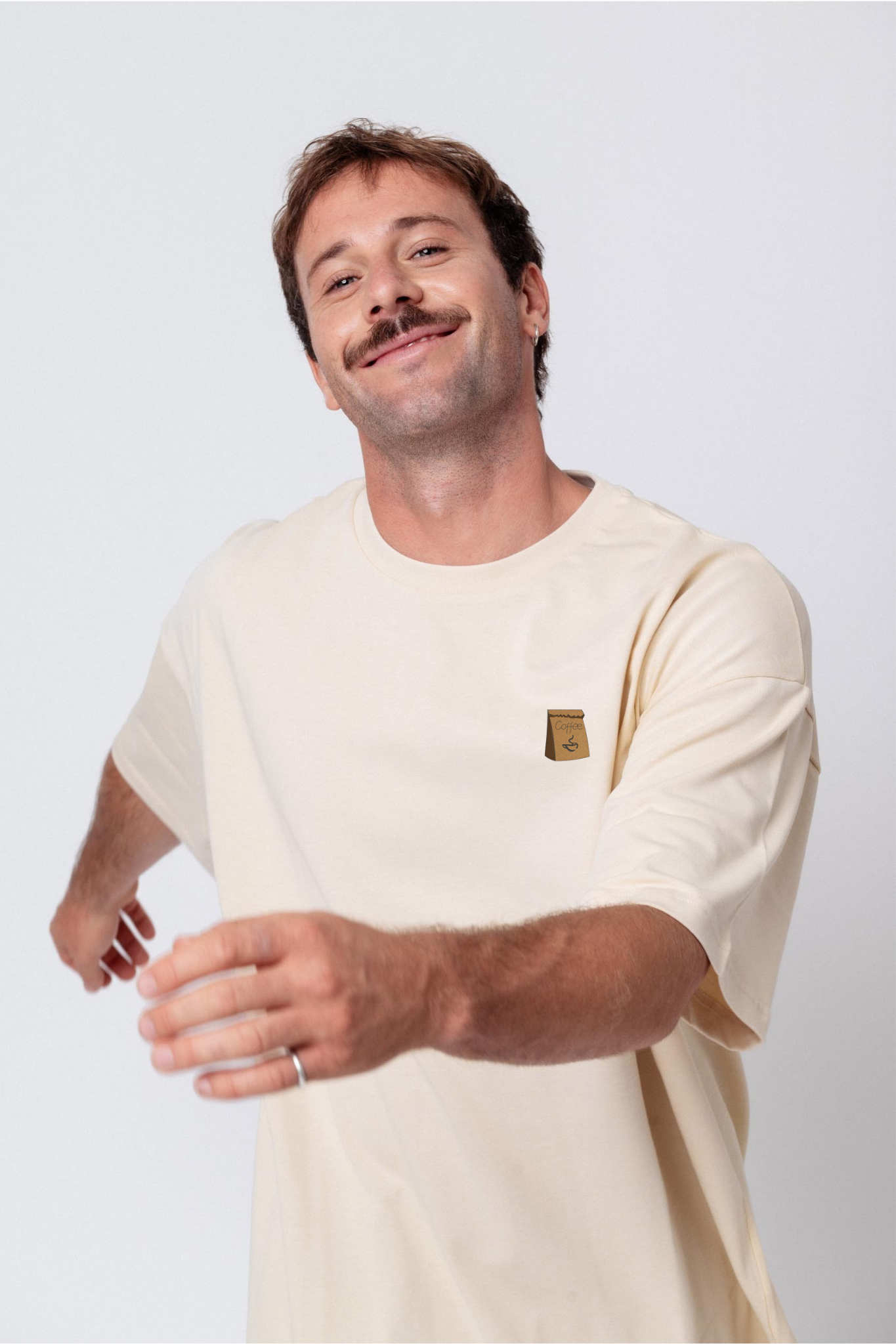 Heavy Oversized Bio Baumwoll T-Shirt mit extra schwerem Stoff (230gsm) und gesticktem Coffee Bag  Design