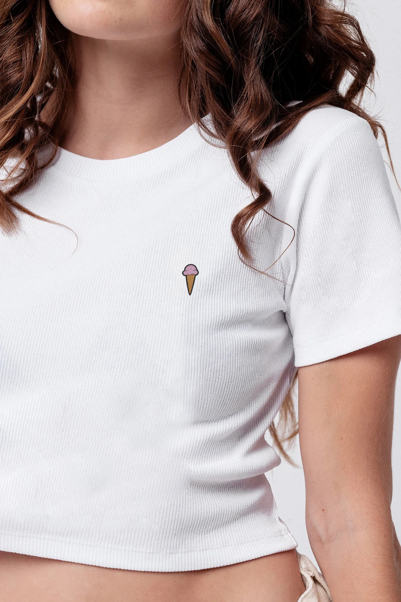 Eis | Besticktes Bio Baumwoll Cropped T-Shirt