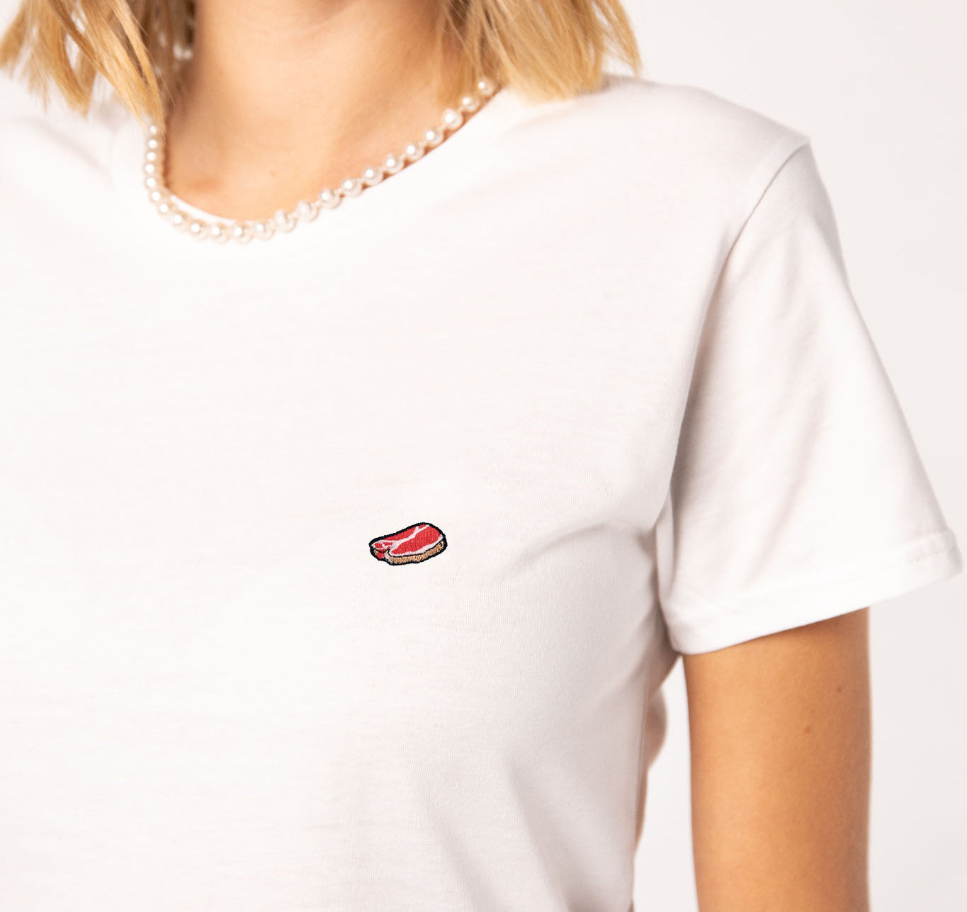 Hochwertige Stickerei auf weicher, atmungsaktiver Bio-Baumwolle.