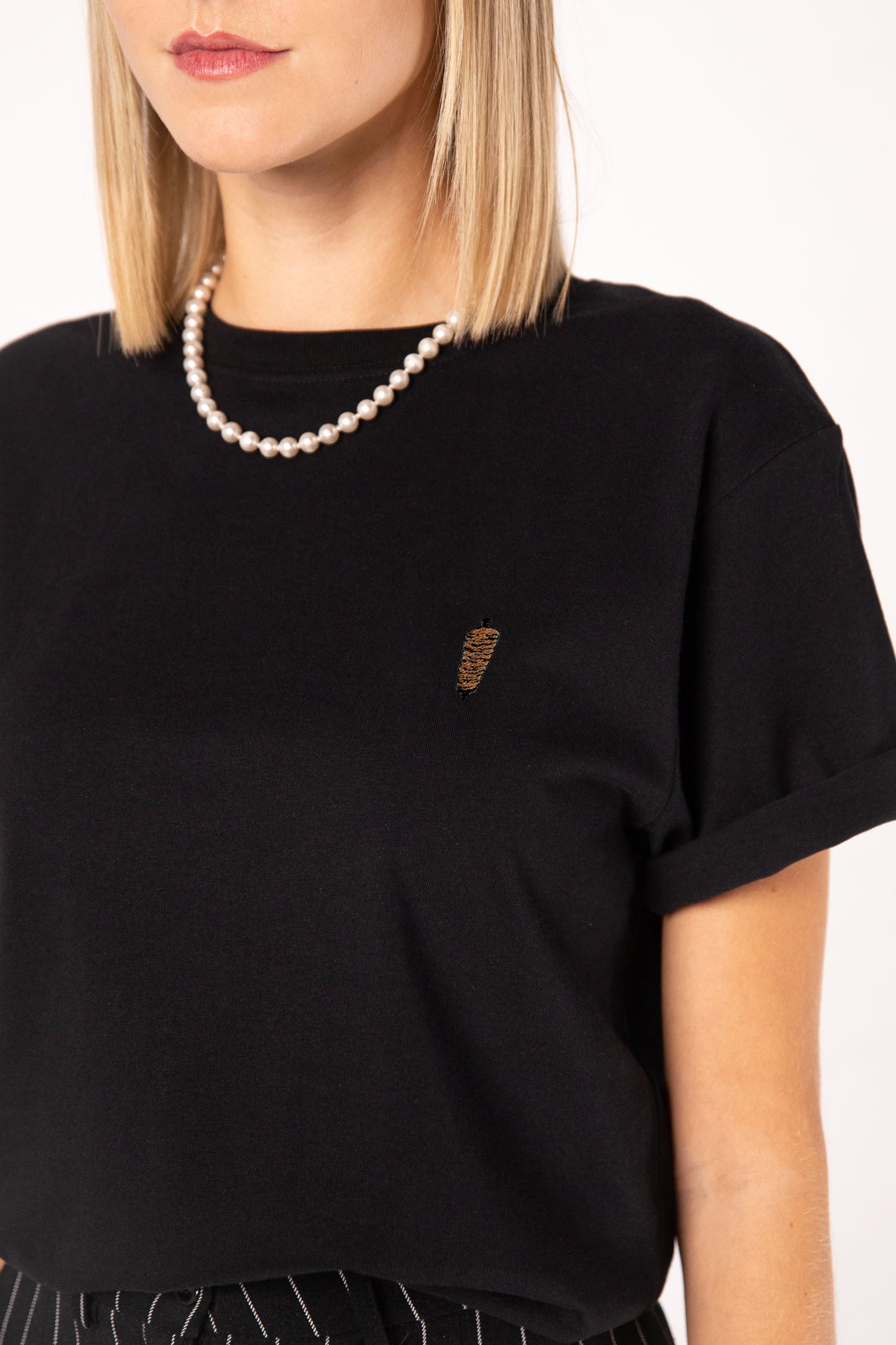 Besticktes Bio Baumwoll Frauen T-Shirt mit extrem angenehmen Stoff (155gsm) und gesticktem Dönerspieß Design