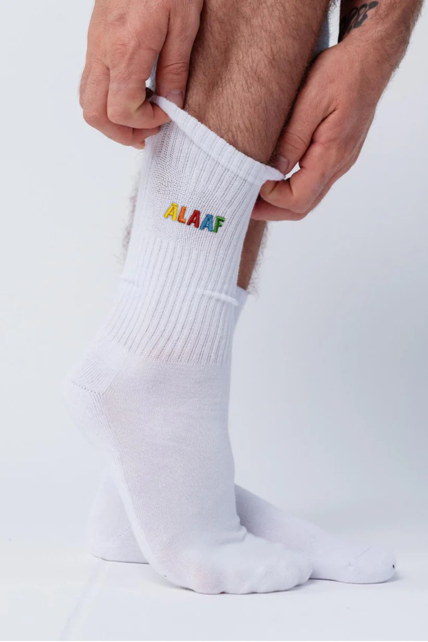 • Embroidered on both socks (each outside)