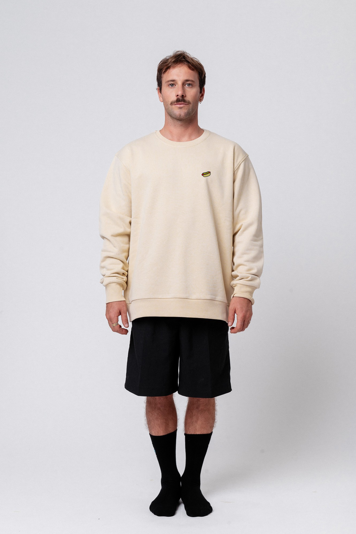 Bestickter Bio Baumwoll Unisex Pullover mit schwerem Stoff (320gsm) und gesticktem Hot Dog Design