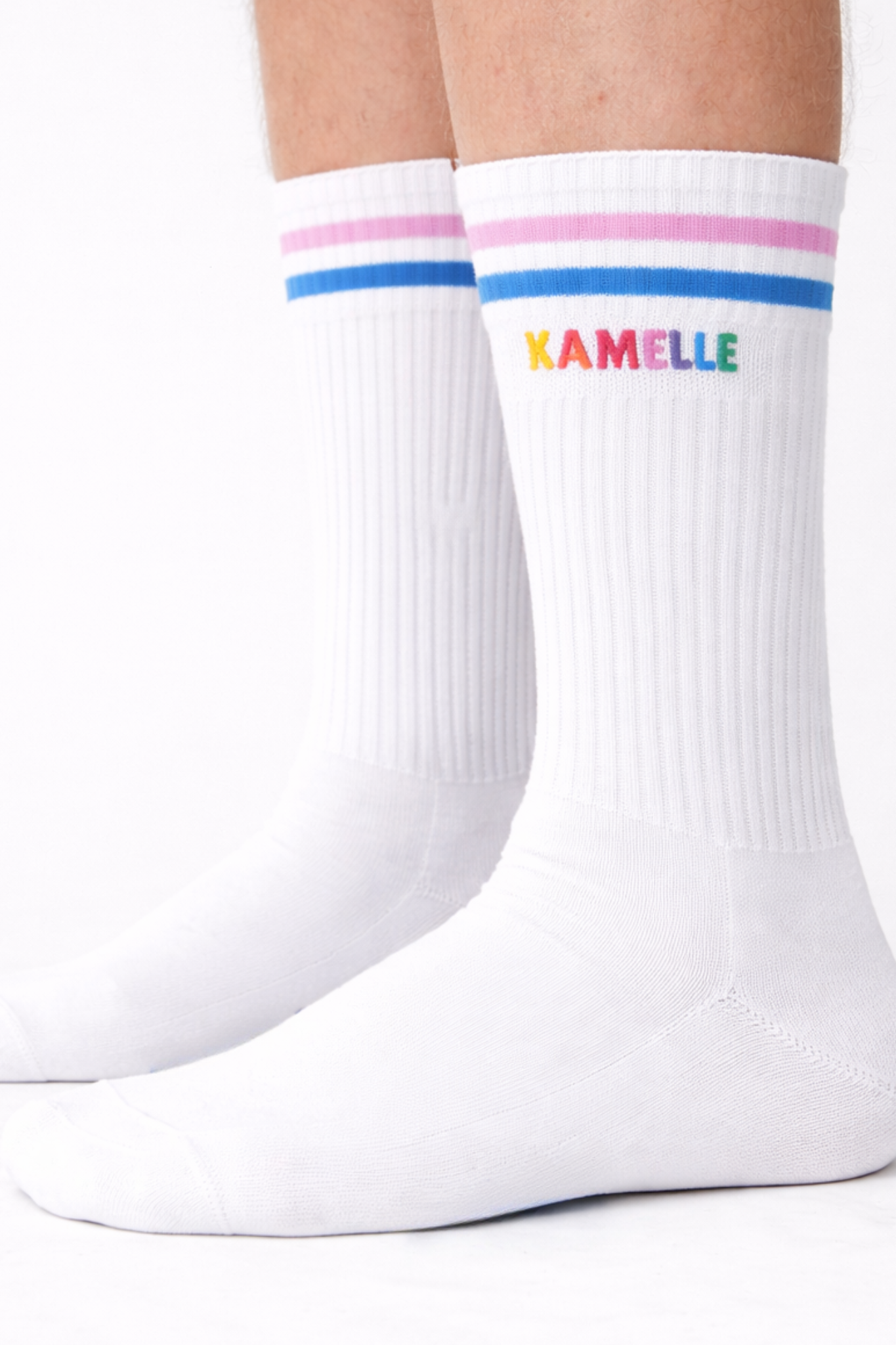 Perfekt für die Karnevalsaison: Super hochwertige Bio Baumwoll Crew Socken mit gesticktem Kamelle Schriftzug